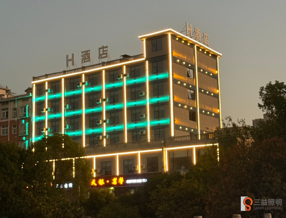 沅江H酒店是益陽沅江中高端商務(wù)酒店,外墻亮化工程旨在提升酒店辨識(shí)度,提高酒店人氣。
